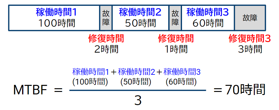 故障と故障の間、平均稼働時間のことです。